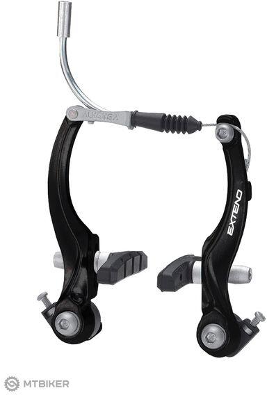 Komplett MTB / Trekking / City fékpofa, használható elöl és hátul, kovácsolt duralumínium ötvözetből. Karhossz 110 mm, lineáris állítórugók, 60 mm menetes szimmetrikus fékblokkok 20-38 mm magasságállítással. Rögzítőanyaggal (porvédők, 90* és 135* vezetőcsövek, imbuszkulcs) jár. forgócsavarok, alátétek). Súly: 2 x 180 g.